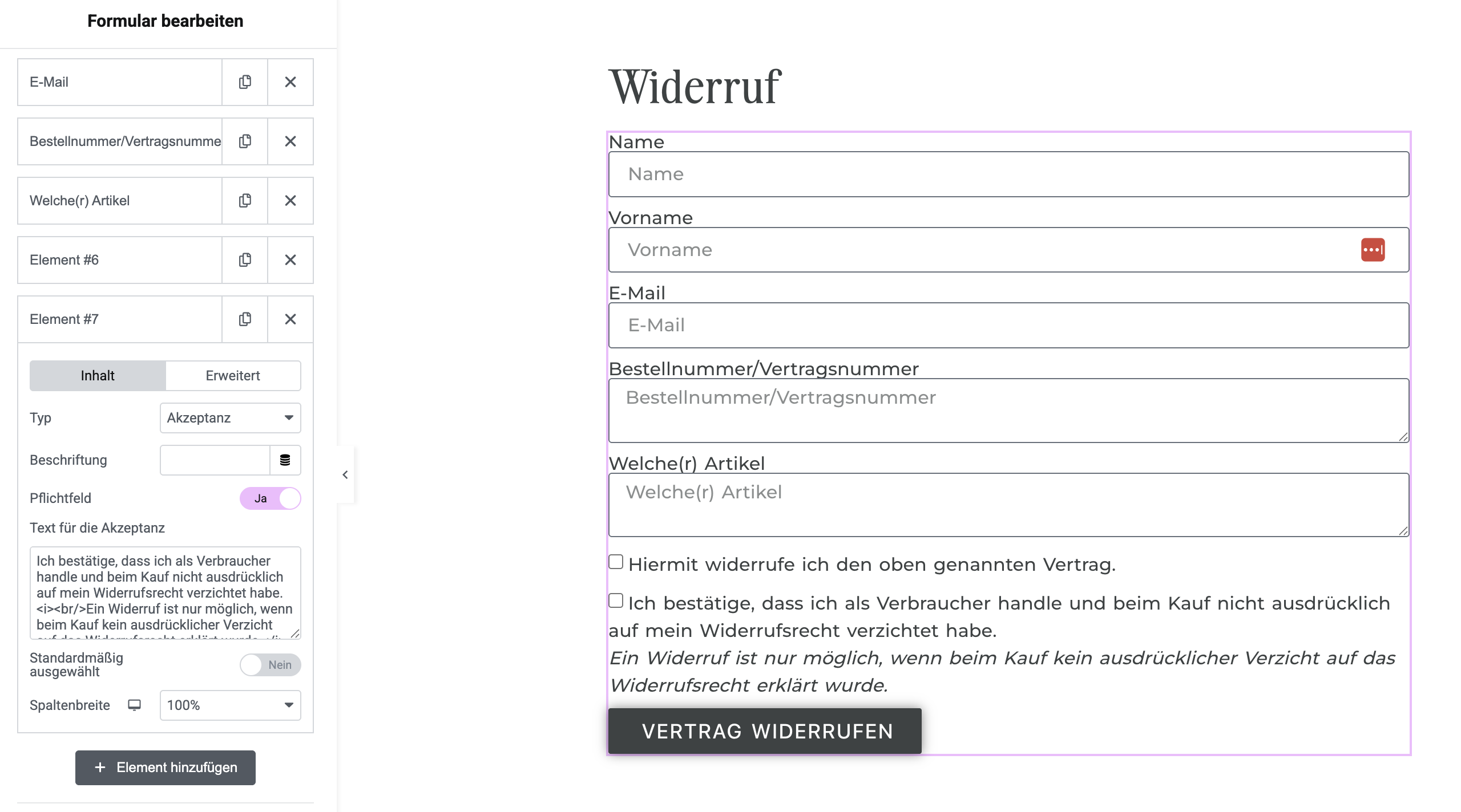 Für einen sauberen Prozess brauchst du ein dediziertes Widerrufsformular mit klaren Feldern und Bestätigungsschritt.