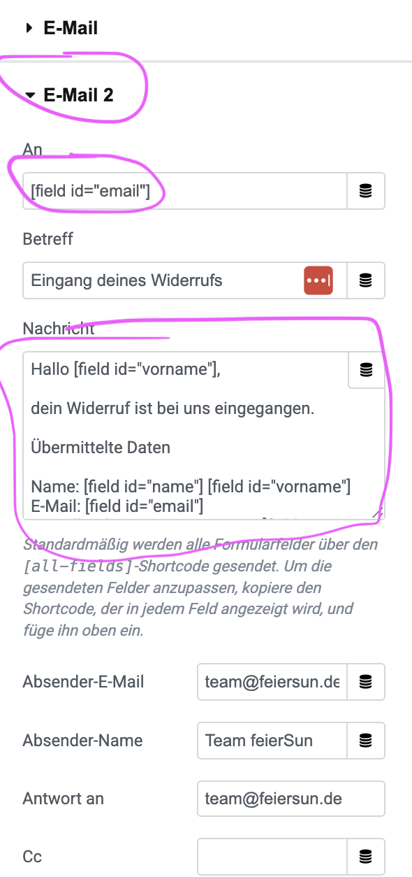Du bekommst ebenfalls eine E-Mail über den Eingang des Widerrufs